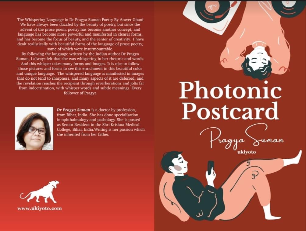 “Photonic Postcard” by Pragya Suman alternately surprises and beguiles with its plethora of arresting and surreal images such as: ‘Vincent dipped his figurative fingers in the earthen bowl as they were sodden in sweat for years’. Her poetry also displays a painter’s sensibility in the following startling imagery from the poem, ‘I am Covid Positive’: ‘…I saw a shriveled woman sitting in one dimension, her face wrapped in a pestle-white towel’. The freshness and originality of the imagery in “Photonic Postcard” make this book a memorable read.