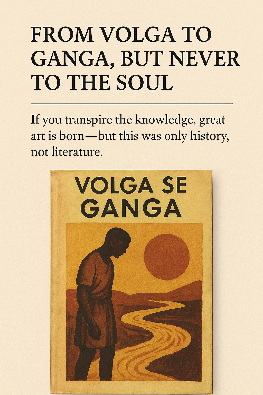 Volga se Ganga, devoid of literary and artistic merit, owes its fame largely to historical convenience. The Congress regime in India, with its Soviet leanings, needed “national” narratives that spanned centuries but aligned with modernist socialist ideas—and Rahul Sankrityayan delivered on the Congress platter. The book is less about artistic merit and storytelling, and more about building an ideological bridge from the Indus Valley to Communist utopia. It is propaganda dressed in the garb of historical fiction, where literature becomes a tool for nation-building rather than self-exploration or art.